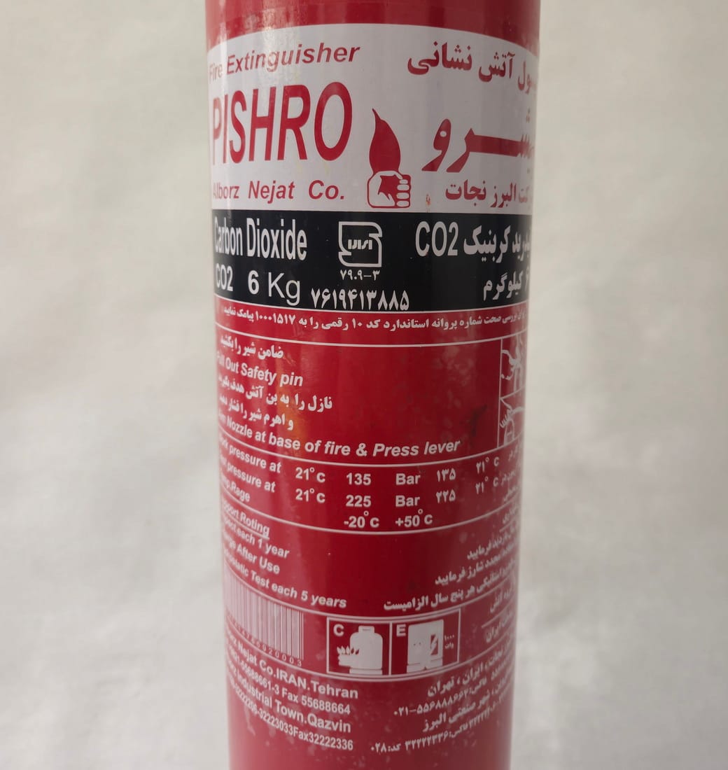 کپسول آتش نشانی 6 کیلوگرمی CO2 پیشرو
