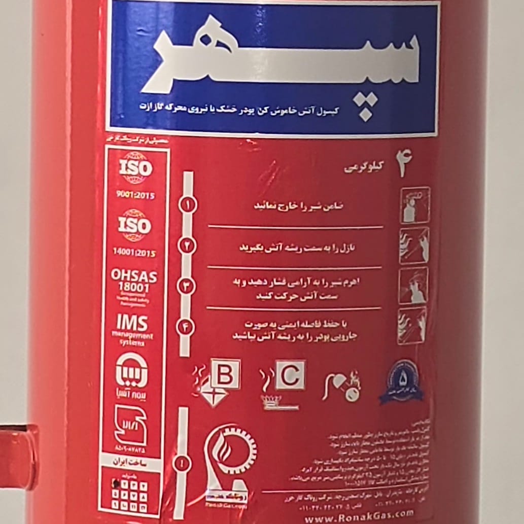 کپسول آتش نشانی 4 کیلوگرمی پودر و گاز سپهر